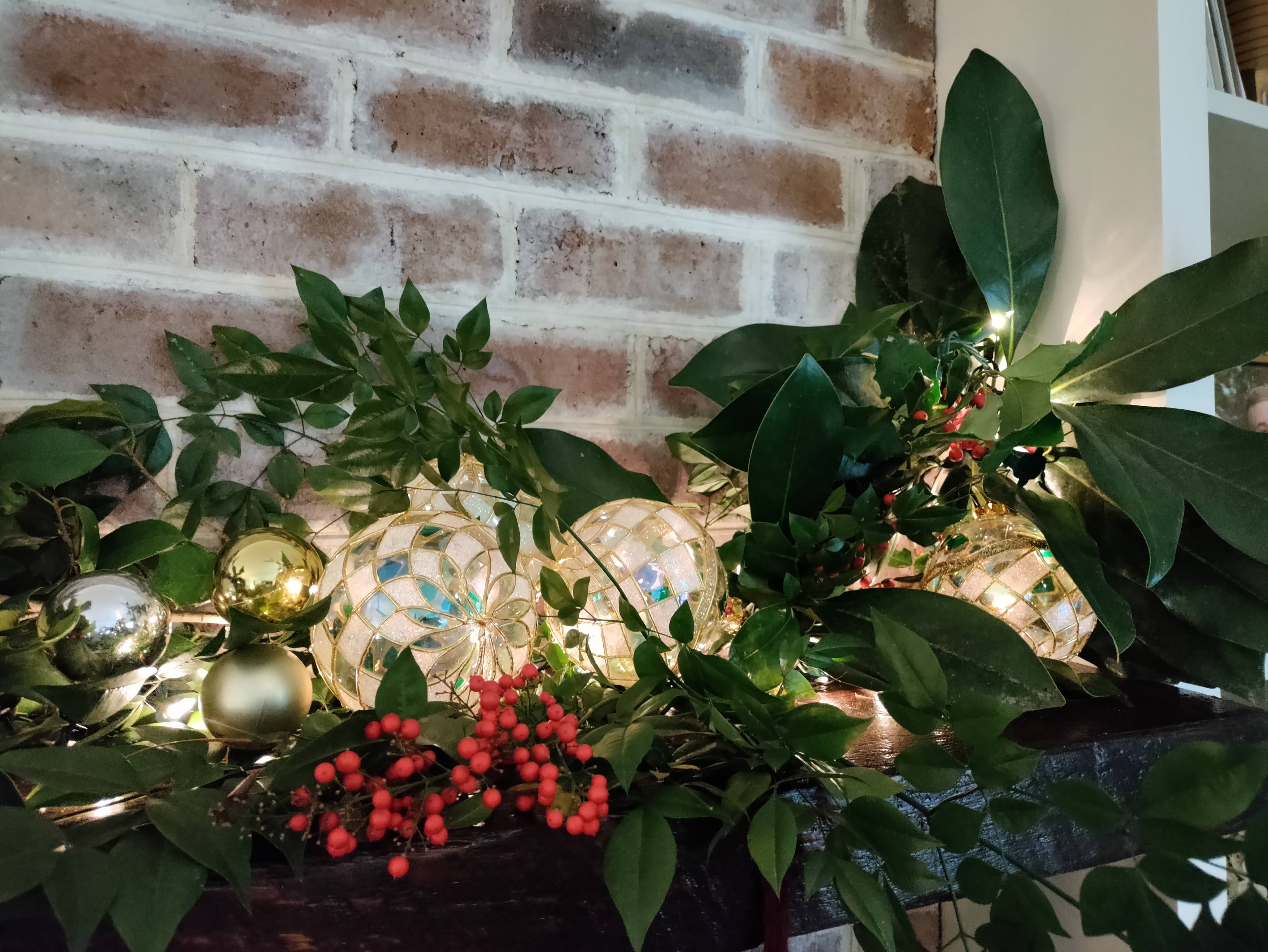 As I look at my own house, my situation is similar…. a very scaled down version of what I usually “do” at Christmas. I have a tree in the front yard with branches lit in clear lights, and simple green wreaths with red bows on the door and panels on the front of the house. That’s it. Nothing indoors…no garland with lights or tree with ornaments surrounded by packages. You won’t find collections of snowmen, nutcrackers, international Santa Claus statues, or Christmas cottages displayed. I have them all, but they remain packed in boxes in the attic.