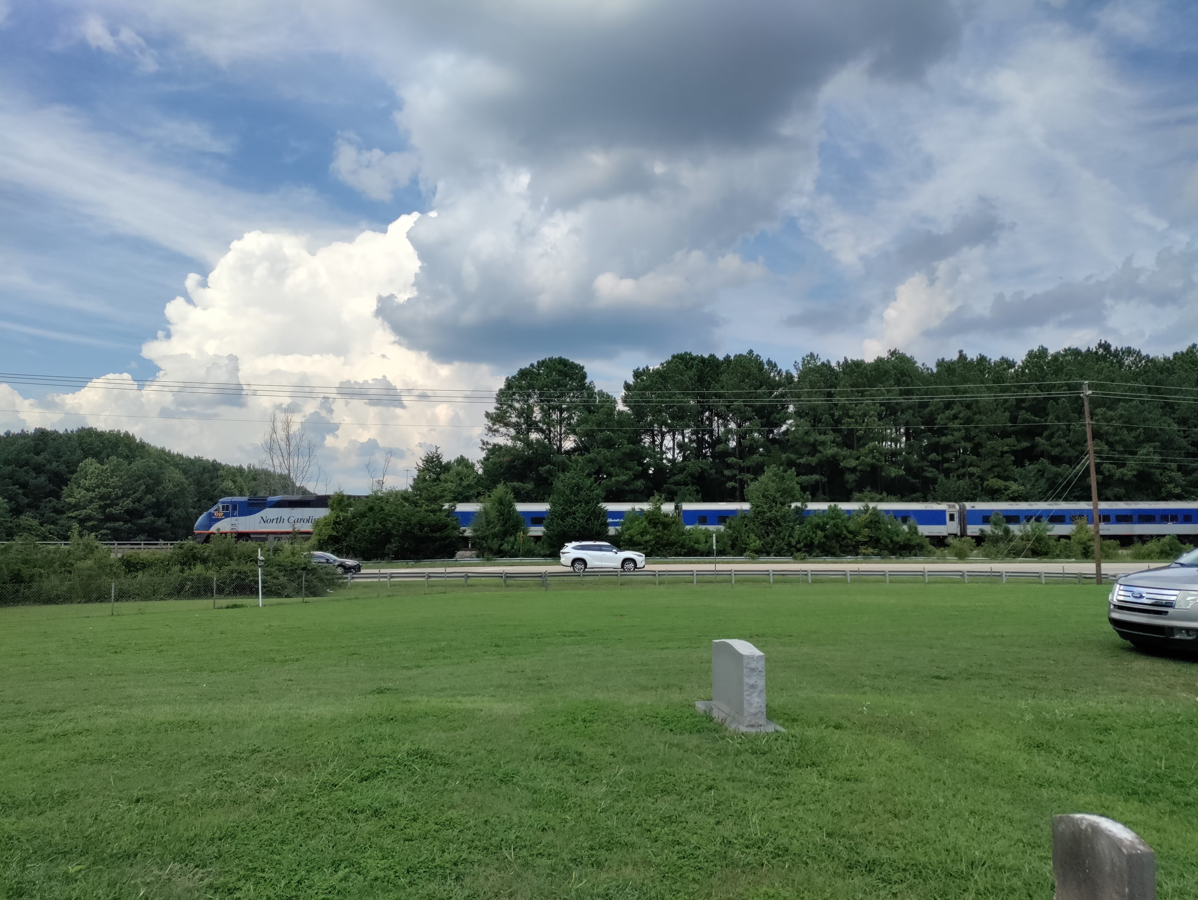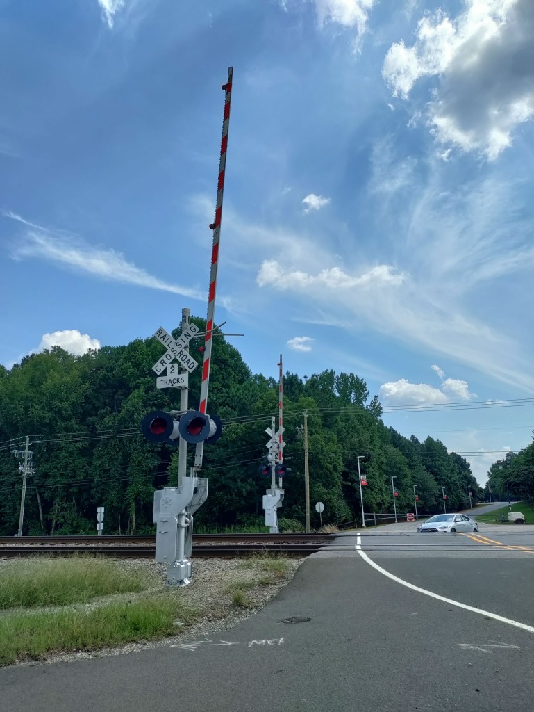 Fourteen months after Mom passed, I delivered the message at Dad’s celebration of life. The family and friends who had come to honor Dad were gathered on a covered drive in front of the church. The chairs were spaced several feet apart, socially distanced, because the Covid pandemic restriction limiting gatherings and indoor crowds was in effect. As I stood on the church steps sharing my thoughts about Daddy, the Amtrak train came barreling down the tracks across the road from the church. With railroad crossings close by, the blaring whistle started….WHooo-WHOOOOOOOOOOooooo. No one could hear my voice over the roar of the train, so I paused, mid sentence. I waited for the horn to stop blowing and the train to pass. Surprisingly, I could see some folks shifting in their seats, looking around, as if they didn’t quite know what I would do because of my “pause”.  But after the noise faded, I simply started again.