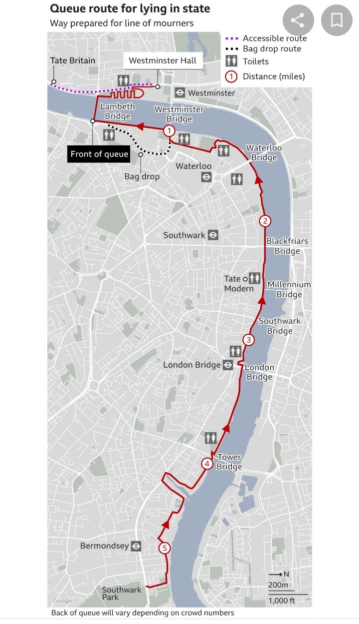 Thank you Keith Sills, a professor in crowd science, for helping to design the queueing and security screening system for events such as the Queen’s funeral. I’ve personally seen more impatience in a 10 minute line at the local Walmart on a Saturday than in the miles of orderly people following a designated path along the sidewalks of London…..all simply waiting for a few seconds in Westminster Hall to pay their respect. The Brits certainly did a magnificent job, and I’m sure many had iPhones that helped them pass the time away as they queued! I will remember this the next time I get in line.
